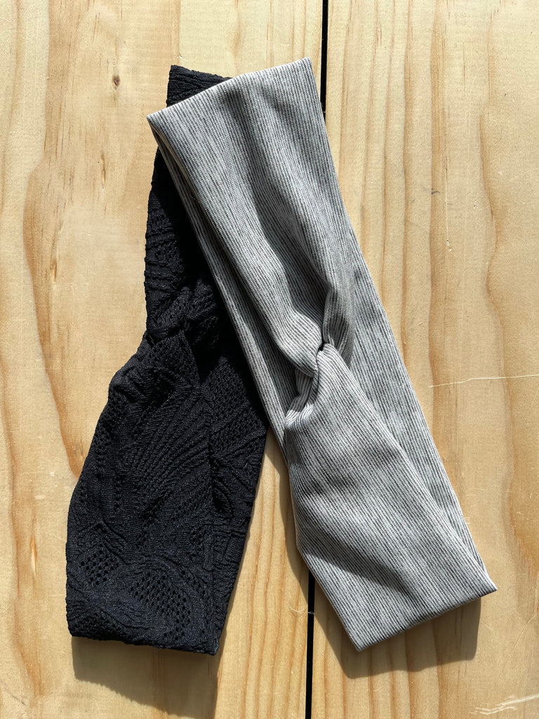 RAD Twist Headband Duo in playful textures. They feature soft and stretchy performance fabrics in Nylon/Spandex....Style them like a bandana or wear the twist in front for a sleek look. Perfect for any adventures!